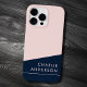 Modern minimal dark blue and pink custom name Case-Mate iPhone case