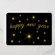 A modern minimal Happy New Year card featuring twinkling stars and script lettering in real gold foil. Add your own custom holiday message to the back or delete the text to leave the back blank.