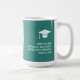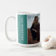 A modern minimal chic gift mug in soft turquoise to commemorate graduation with a simple clean design, featuring customizable text in a sleek sans-serif script, and and photograph on the front. Simply personalize it with your details and gift your loved one a keepsake to remember.