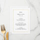This modern and elegant wedding menu features simple black text on a white background, with a faux gold frame.
