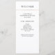 This modern and elegant wedding program features black text on a white background, with a faux rose gold stripe at the top.