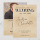 Modern Minimal Floral Script Photo QR Code Wedding Invitation. Celebrate your wedding day with this modern yet timeless wedding invitation. The wedding wording is decorated with soft botanical details, while the names are in flowing script typography all on a warm parchment-inspired background. This classic wedding invitation features bold serif lettering paired with delicate florals, creating a refined yet welcoming design. A personalized photo on the reverse adds a personal touch, while the included QR code makes it easy for guests to access wedding details or RSVP online.