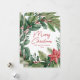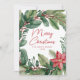 Minimal script Merry Christmas card with holiday floral botanical accents and minimal design.
