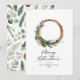Modern minimal foliage wreath peace script holiday card