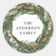 Modern minimal foliage wreath script Christmas Classic Round Sticker