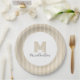 Modern Minimal Gold Stripes Monogram Paper Plate