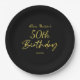 Modern & Minimal Gold Typography Black Birthday Paper Plate