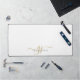 Modern Minimal Gold White Script Monogram Desk Mat