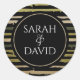 Solid Black with Green Bamboo Stripes Elegant Stylish Modern Wedding Invitation Round Sticker. Stylish black tone big stripes in dull green grey and black colours. Easily Editable. You replaced the template text with your personal text.