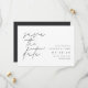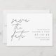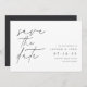 Simple and elegant wedding save the dates for modern minimalist couples feature "save the date" in handwritten script lettering aligned at the left. Your wedding details appear in classic lettering at the right. Use the back for sharing additional information with your guests.