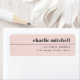 Light blush pink or custom colour return address labels with a thin border between your name and return address and the text aligned to the right. Fonts and colours can be customised with the design tool.