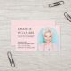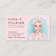 Light blush pink or any colour business cards featuring your photo inside an arch shaped frame. Modern, minimal style design.