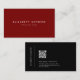 Elegant and modern minimal business card template with QR code. The deep red background is on-trend and classic. This business card design is easy to customise, simply add your own logo and business QR code. Create and add your own unique QR code to easily direct clients to your website.