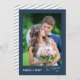 This modern minimalist photo card is perfect for sending Christmas greetings to your family and friends as the new Mr. and Mrs. The background features a dark navy blue accented with white text.