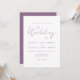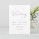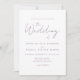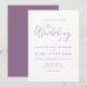 This simple, modern wedding invitation features mauve text on a white background, with the words "the Wedding of" in stylish handwriting calligraphy. Add the names of the bride and groom and wedding details in white sans serif font. The reverse side is solid mauve.