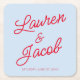 Modern Minimal Minimalist Blue and Red Wedding Square Paper Coaster