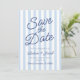Modern Minimal Minimalist Blue Stripes Wedding Save The Date