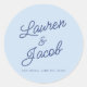 Modern Minimal Minimalist Blue Wedding Classic Round Sticker