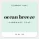 Elegant product label with your product name or scent on a light mint green background with a white border at the bottom. All fonts and colours are customisable. Move and resize elements with the design tool.