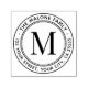 Return address rubber stamp featuring your monogram initial and your name and address in a modern sans-serif font. Elegant, minimal style.