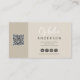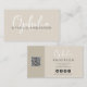 Modern minimal natural script boho QRcode beige natural business card design.