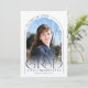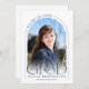This navy blue and white simple minimalist graduation card serves as both a graduation announcement and grad party invitation, and features a photo, arch frame and elegant modern typography.