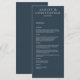 Modern Minimal Navy Blue Wedding Reception Menu