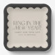 Modern minimal elegant black and cream retro wavy edge bold graphic new years eve party favour decor paper plate design.