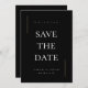 A simple, modern non photo save the date with elegant vertical gold bar accents. A great way to announce your upcoming wedding nuptials or event.
