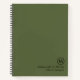 Modern notebook features a minimal design in a stylish olive green colour palette with black accents. Custom name presented in the lower right-hand corner in stylish simple font with a complimentary minimal monogram medallion.