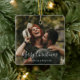 Modern Minimal 1 Photo Merry Christmas Script Overlay Ornament. Easy to personalise with your names and favourite photo.