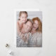 Simple stylish minimal trendy photo overlay chic white calligraphy and snowflakes Happy New Year greeting card template personalised with your photo, and family name