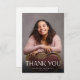 This graduation flat thank you card features a minimal design offer a vertical photo that fills the front of the card. White text overlays the bottom of the photo. Custom text, on the back, allows you to add a personal thank you message.