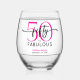 Modern Minimal Pink Fifty Fabulous Script Birthday Stemless Wine Glass