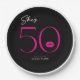 Modern and chic, this birthday paper plate design declares, "she's 50" and combines classic black and white with accents of bright pink, with a playful pair of lips. It's minimal design is a simple and fun design to celebrate the milestone birthday. Created by Simply Farmhouse Press.