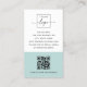 Modern, vertical business cards with your name and title on the front and customisable template fields for your contact information, logo and QR code on the back. White and aqua blue or custom colours. You can change fonts and colours, move and resize elements with the design tool.