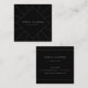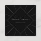 Elegant, black, professional business cards or personal profile cards with your name and title/company name printed on a diamond shape with dark grey radial lines behind it on the front. On the back are customisable template fields for name, title/company name/speciality and contact information. A minimal, classy and modern design.
