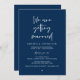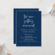 Mark the beginning of your forever with elegance using our contemporary "navy blue" theme "wedding elopement" celebration invitation card, "We are getting married". Perfect for couples extending their joyous occasion, this invitation exudes sophistication with a hint of playfulness, setting the stage for a memorable event. Adorned with a timeless modern script design theme, it adds a touch of refined charm to your festivities. Crafted by TeeshaDerrick, this invitation promises to beautifully capture your love story.
