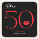 Modern Minimal Red Lips She's Fifty Birthday Square Paper Coaster