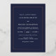 These modern and elegant wedding invitations feature white text on a dark, midnight blue background, with a rose gold foil border.