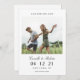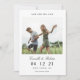 Modern and minimal save the date cards, perfect to announce your new wedding date. The front of the card features the couple photo "Save our new date" is displayed across the top of the invitation. customise with your names, date, and location.