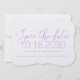Simple, Minimal, Plain Non-Photo Save the Date Card in an elegant fancy die-cut bracket shape in lilac lavender orchid purple and white with elegant script typography and large date numbers in a chic sans-serif font. Customise the template by selecting any colours and fonts you want for your wedding announcements.