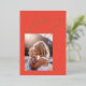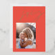 Modern minimal script red joy 1 photo holiday card. Elegant real gold, silver and rose gold foil design.