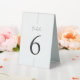 Simple and chic table number tents make an elegant statement at your wedding or event. Design features "table" in handwritten script lettering, with the table beneath in timeless serif typography. Design repeats on back. Colorway: Ash, a soft black.
