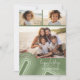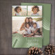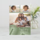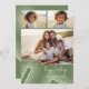 Front - A simple collage of 3 photos with a splash of retro curvy line art in shades of juniper green. The greeting is in a thin handwriting font with lots of movement. Add your family signature over the pastel stripes for a non-traditional holiday card design.