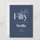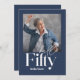 Modern minimal typography simple photo navy blue and white 50th birthday invitation. Part of a contemporary collection.