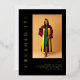 A modern minimalist 2026 graduation announcement card in sleek black, featuring customizable text in real gold foil with photograph on the front, and an elegant chic script on the back. Simply personalize it with your details.