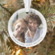 Modern minimalist style, double sided, two photo, round acrylic ornament. This custom design features your personal photos on front and back, each highlighted in a creative light gradient boarder. The designs typography offers a fully editable Happy Holiday Greeting on the front and your names or family name on the back. The text is in a warm bronze colour which also can be easily edited to any colour of your choosing. The perfect keepsake gift and tree décor for the holidays & Christmas.