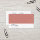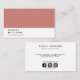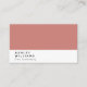 A simple, professional business card with bold, modern typography. Featuring terra cotta colour blocking, this design features your name in black bold, modern lettering bottom left. The back of the card contains all your contact information, and three social media icons and field for your username. Copyright Anastasia Designs, all rights reserved.