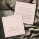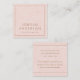 Square, professional business cards or personal profile cards with a printed, light blush pink coloured linen background and thin border. Customisable name and title/company name on the front. On the back is a customisable template field for your contact information.